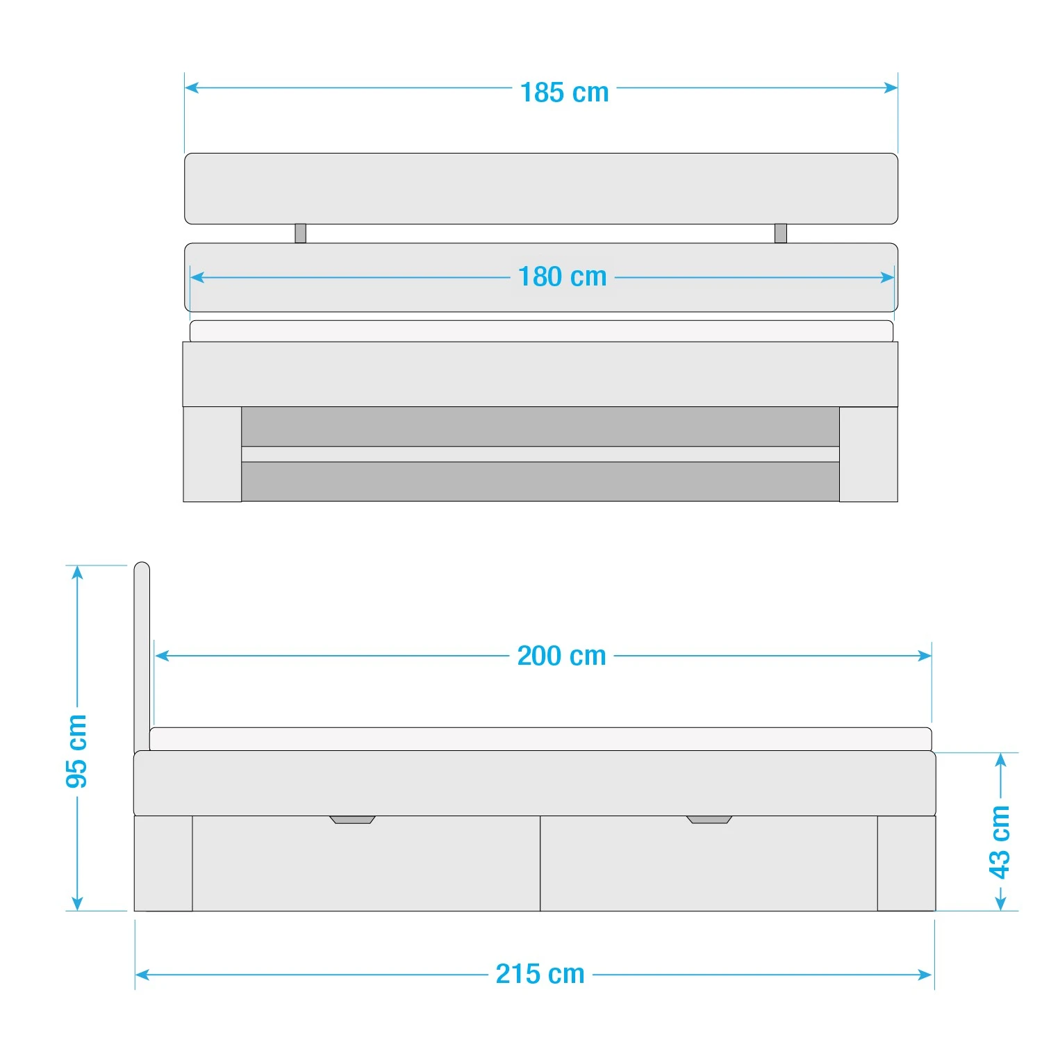 - 4 geräumige Bettkästen auf Rollen (2 links, 2 rechts)