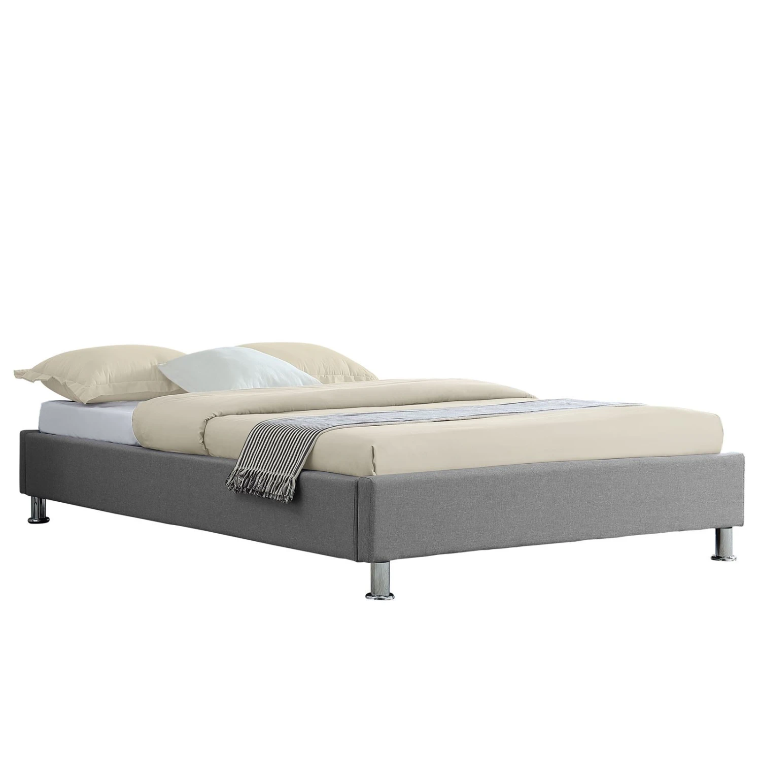 erhalten Sie ein stilvolles Bett für Ihr Schlaf- und Jugendzimmer. Auf das Kopfteil wurde verzichtet, so können Sie das Futonbett frei im Raum aufstellen, zudem eignet es sich optimal für Wohnungen mit Dachschrägen. Der stabile Holzrahmen ist gepolstert und mit Stoff in grau bezogen. Das moderne Futonbett lässt sich harmonisch in die Einrichtung integrieren. Für Stabilität sorgt der Mittelsteg, da der Lattenrost im Lieferumfang enthalten ist, benötigen Sie nur noch eine passende Matratze.