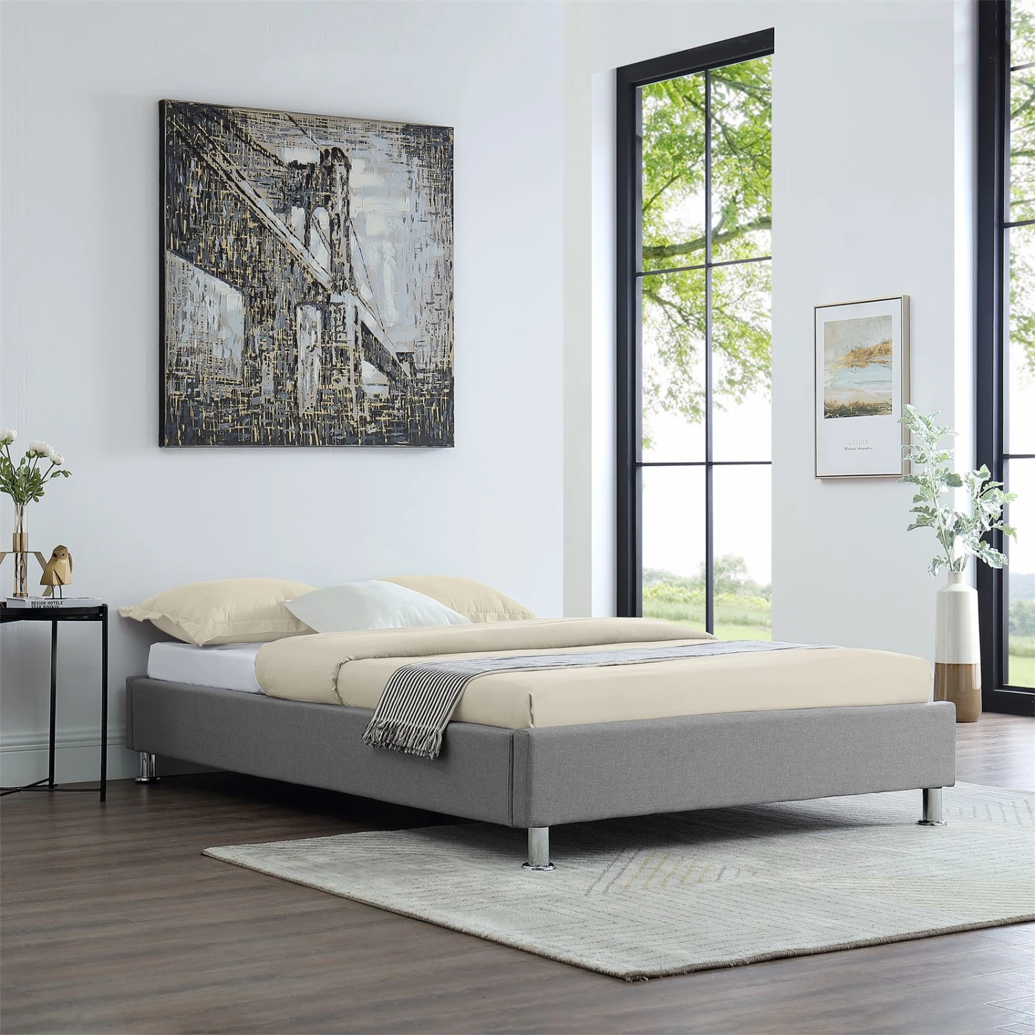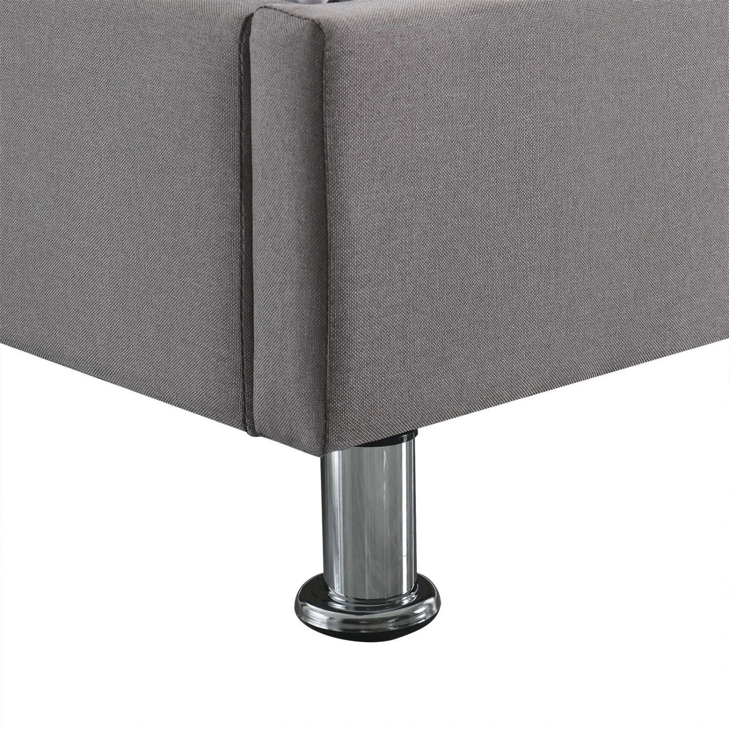 - Das Bettgrundgestell ist aus stabilem Holz gefertigt und mit einem Stoffbezug in grau bezogen