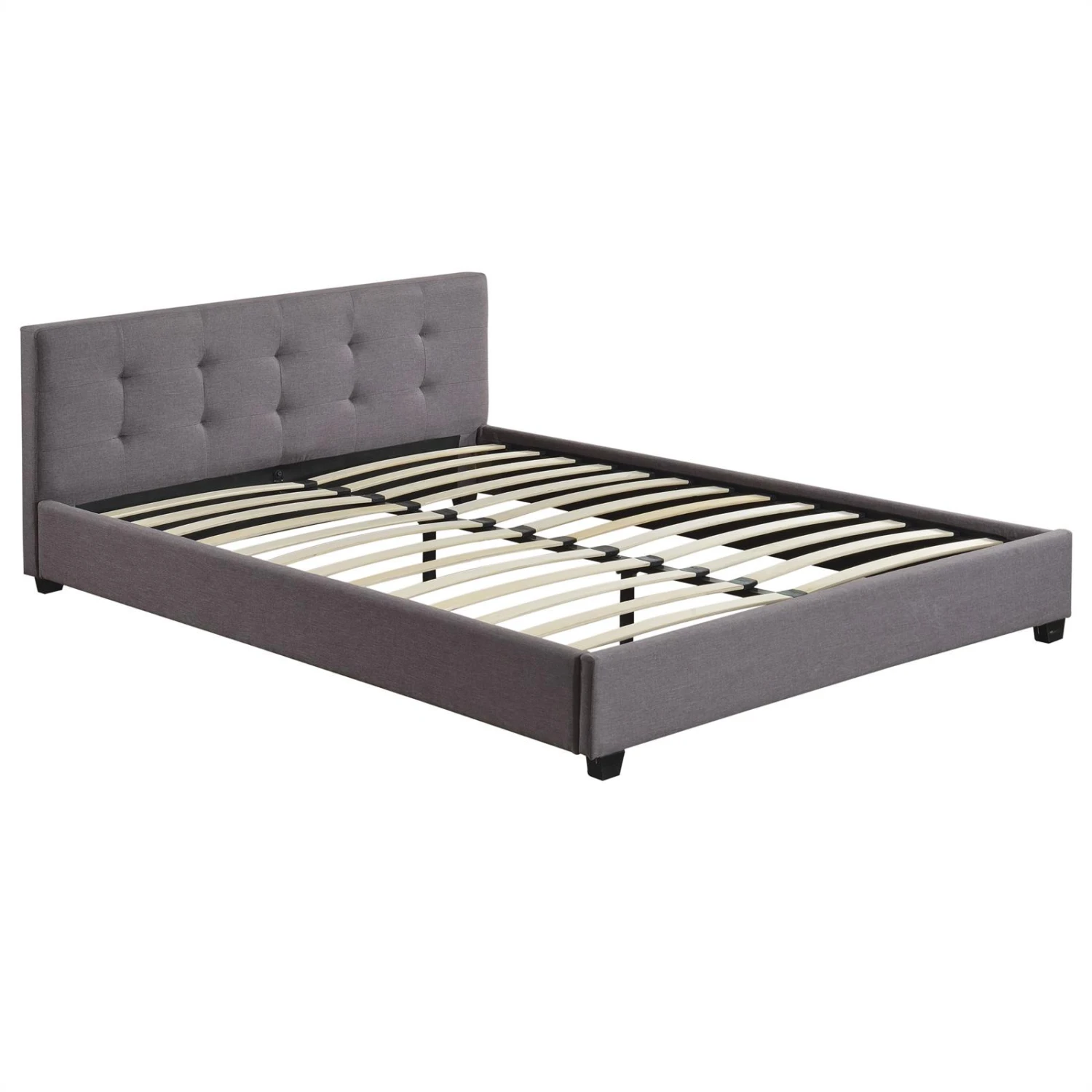 - Das Bettgestell ist gepolstert mit einem hochwertigen Stoffbezug in grau.