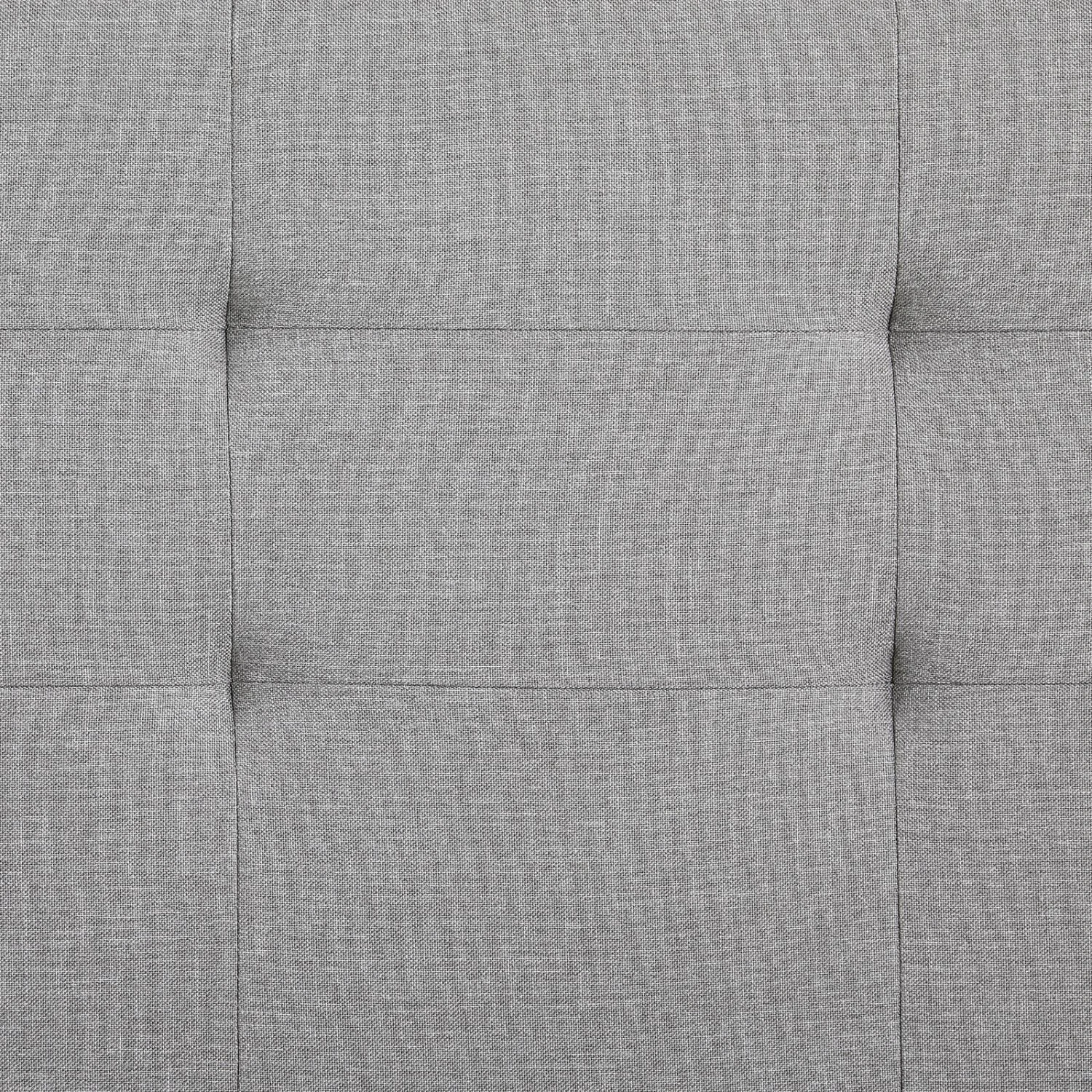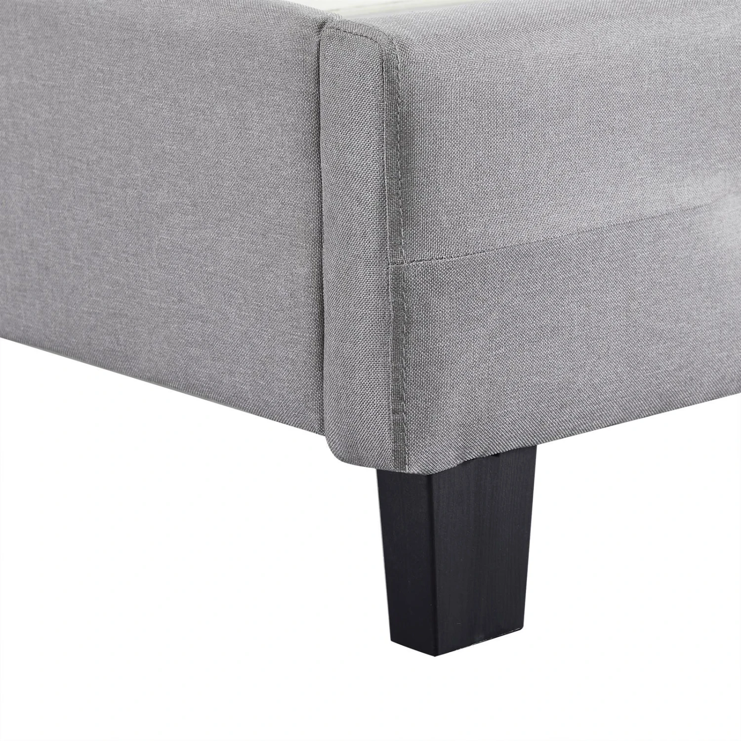- Das stabile Bettgestell ist gepolstert mit einem Stoffbezug in grau