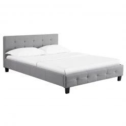 erhalten Sie einen Platz zum Träumen und Schlafen, die Liegefläche von 140 x 200 cm lädt dazu ein. Mit einem strapazierfähigen Stoff in grau wurde das stabile Bettgestell bezogen. Schöne Ziernähte an Kopf- und Fußteil machen das Doppelbett zu etwas Besonderem. Sie benötigen nach der Montage nur noch eine passende Matratze, Sie erhalten neben dem Bett auch das Lattenrost und die Mittelstrebe. Das Designbett wird zum Blickfang in Ihrem Schlafzimmer, es fügt sich harmonisch in Ihre vorhandene Einrichtung ein.