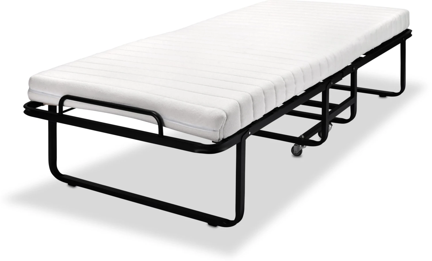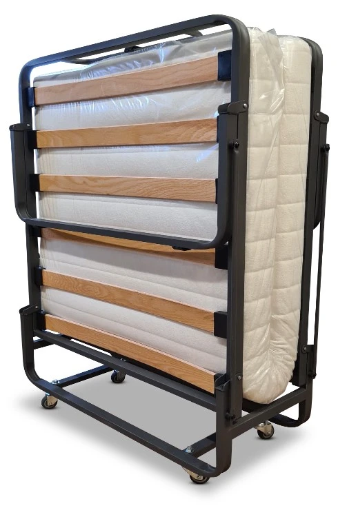 Die Leichtlaufrollen sorgen für einen schnellen und problemlosen Platzwechsel vor bzw. nach der Nutzung des Gästebettes ( im zusammengeklappten Zustand )