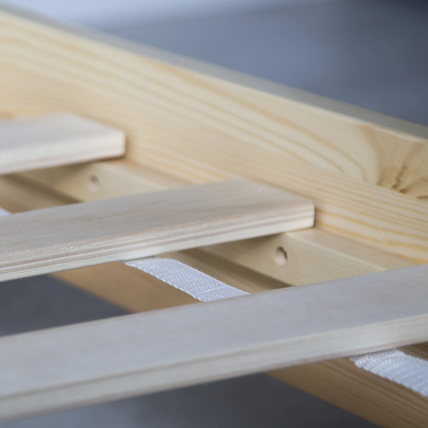 Bettgestell aus Kiefernholz naturfarben mit Holzmaserung