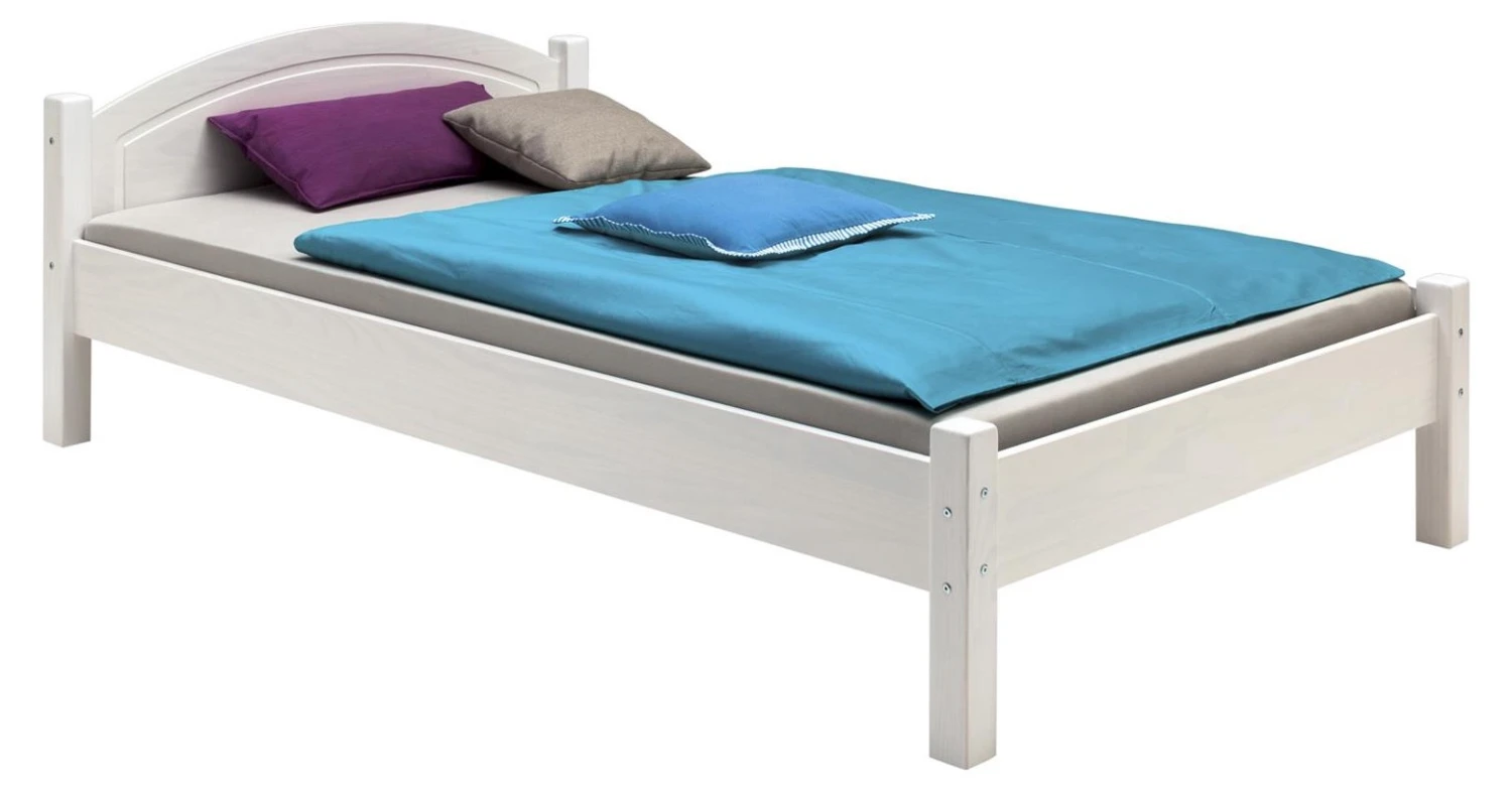 - Das Bettgestell ist aus Kiefernholz gefertigt und in weiß lackiert.