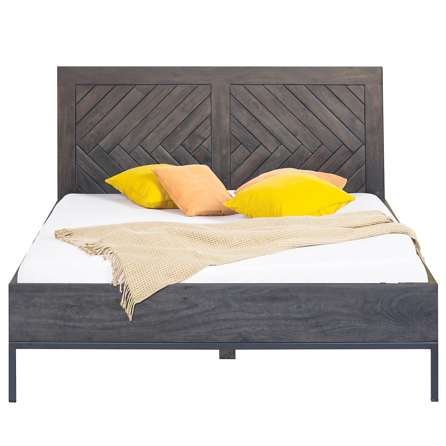 - Kopfteil & Rahmen: Massivholz Akazie, lackiert