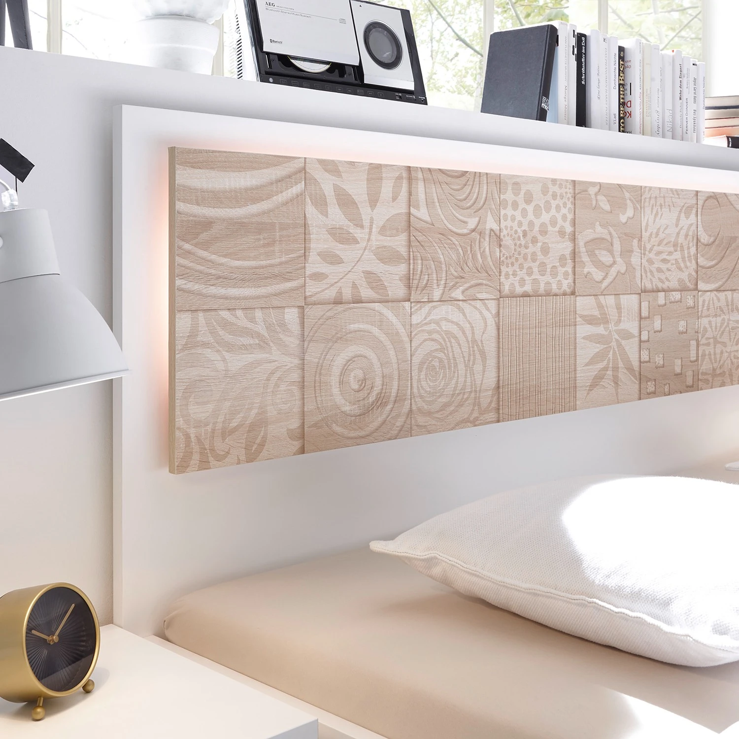 - Kopfteil: Eiche Sonoma Dekor mit Siebdruck