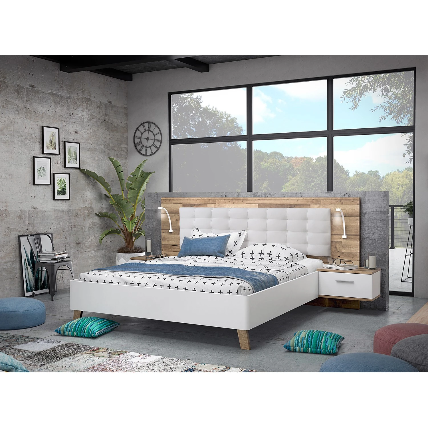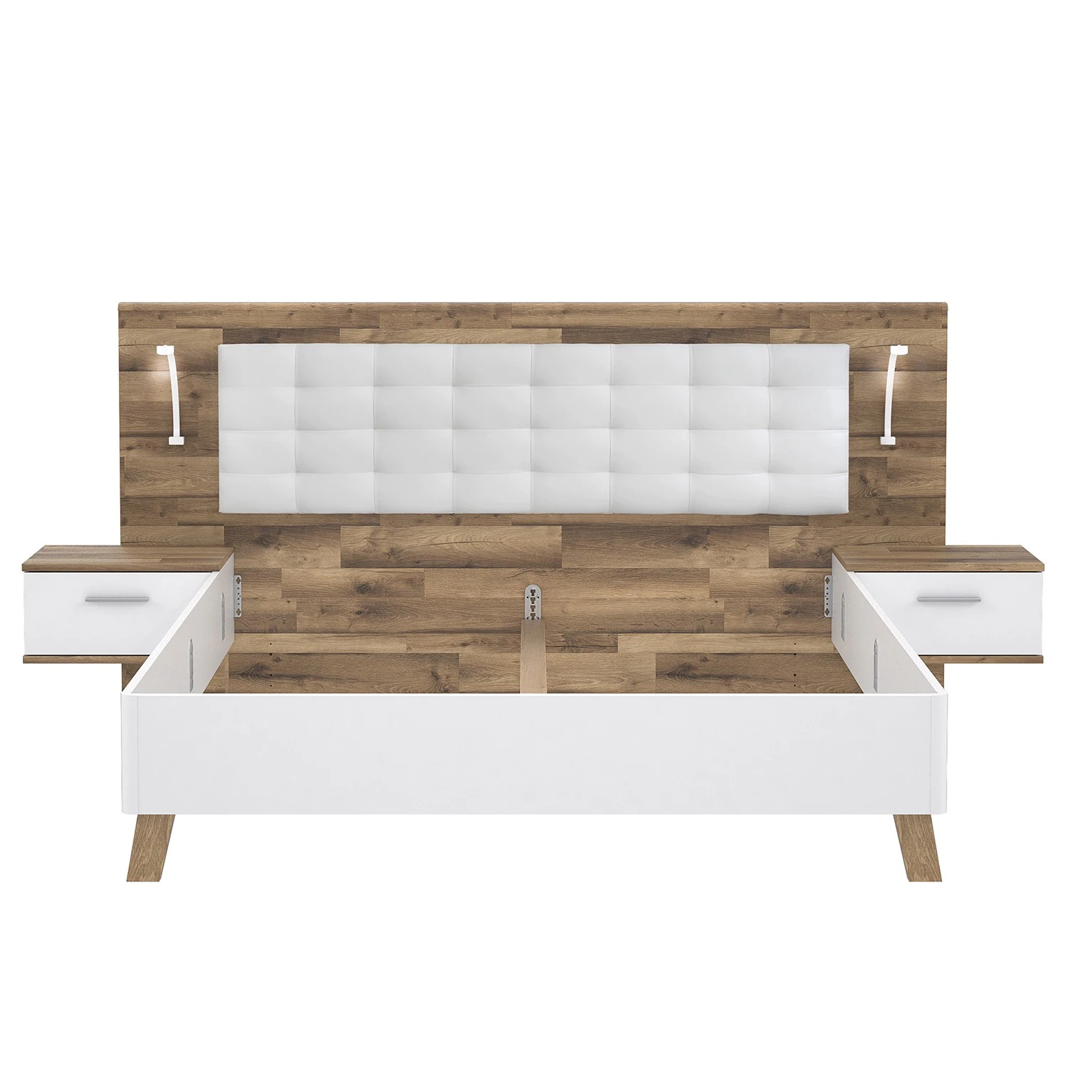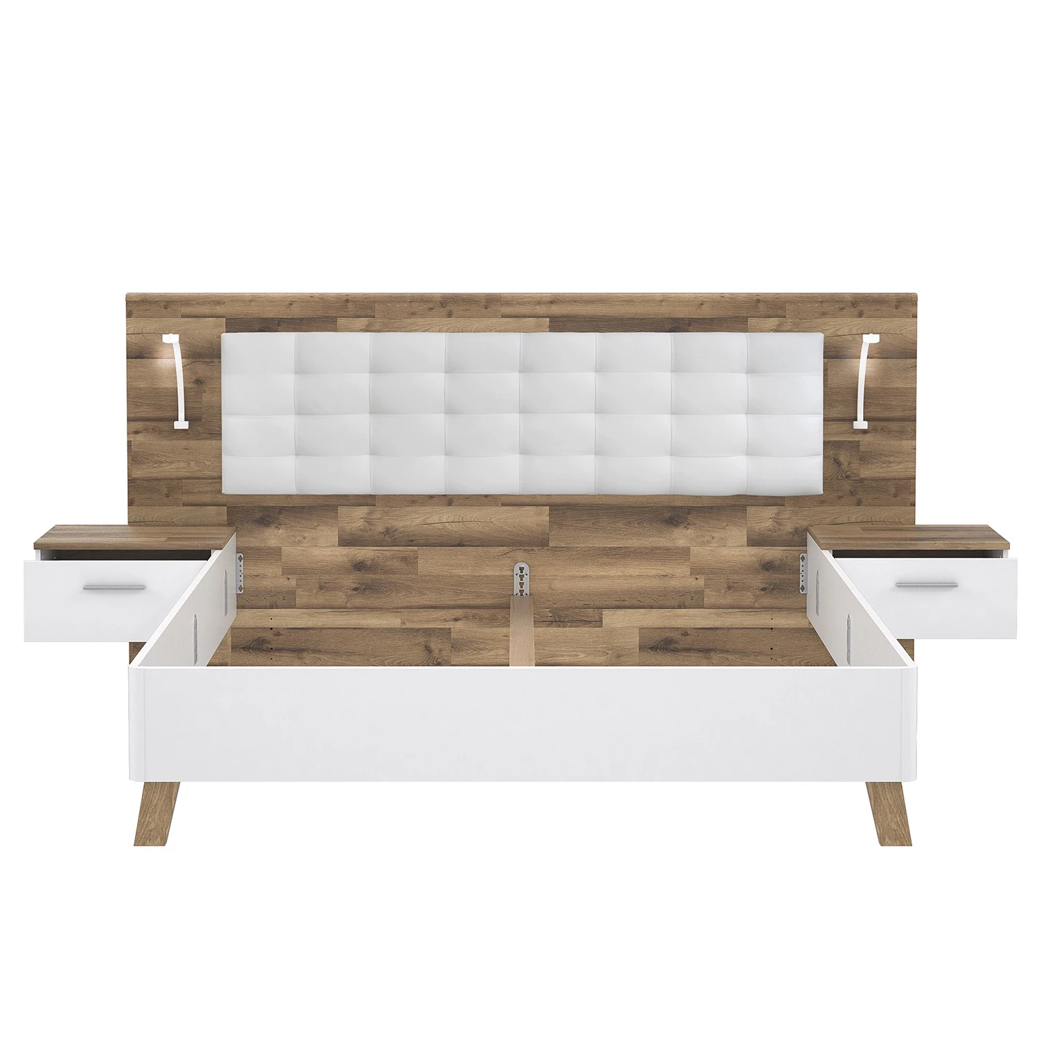 - Lieferumfang: Bett inkl. Nachtkommoden & Beleuchtung ohne Dekoration