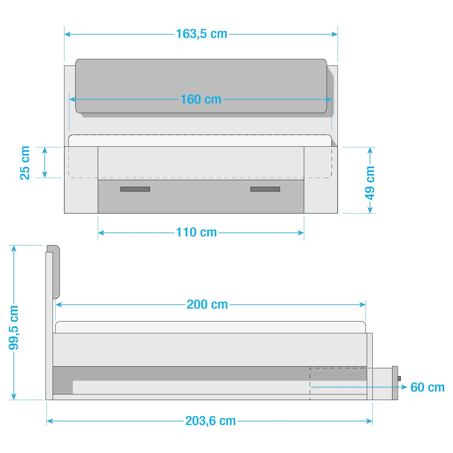 - Liegefläche: 160 x 200cm