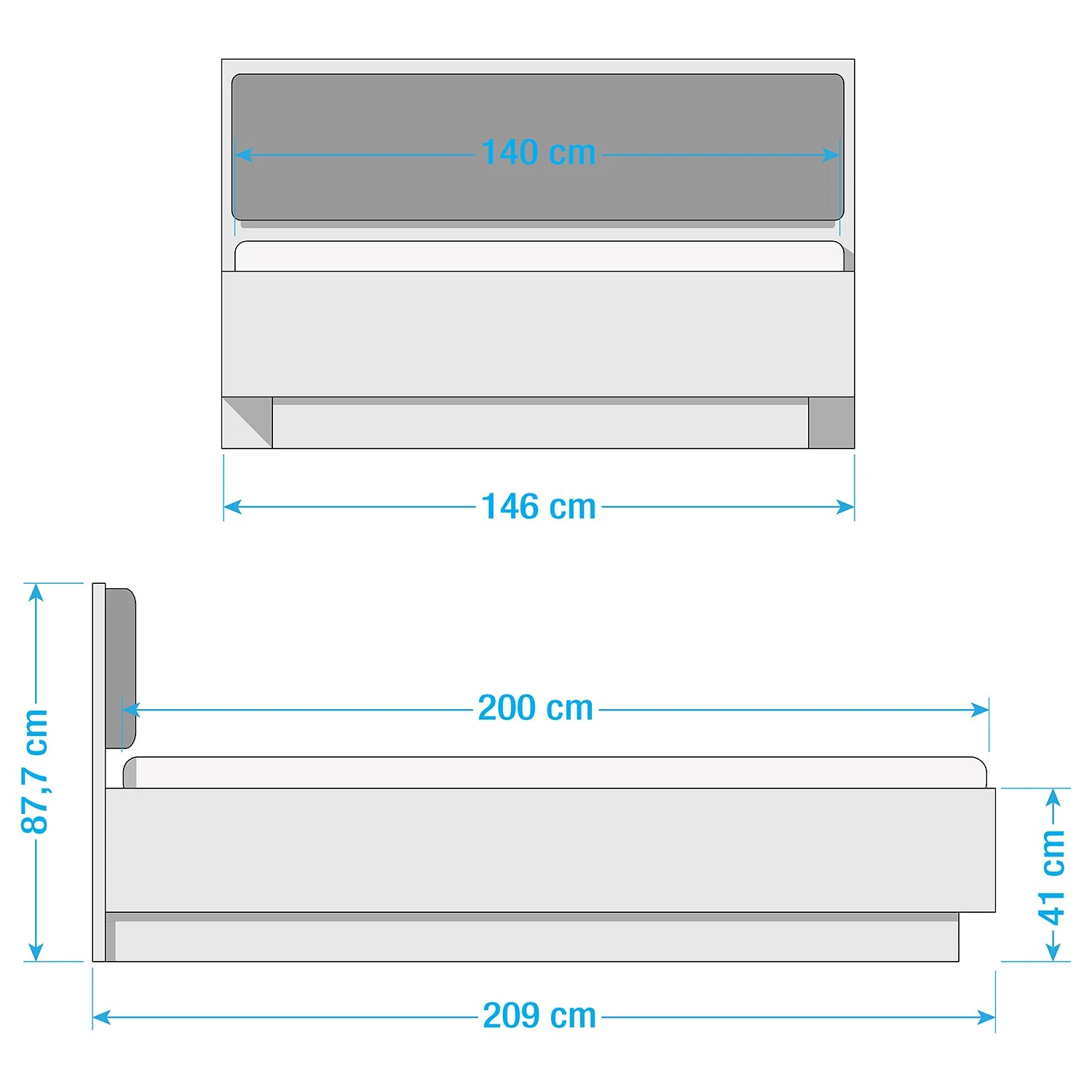 - Bettkantenhöhe: 41 cm