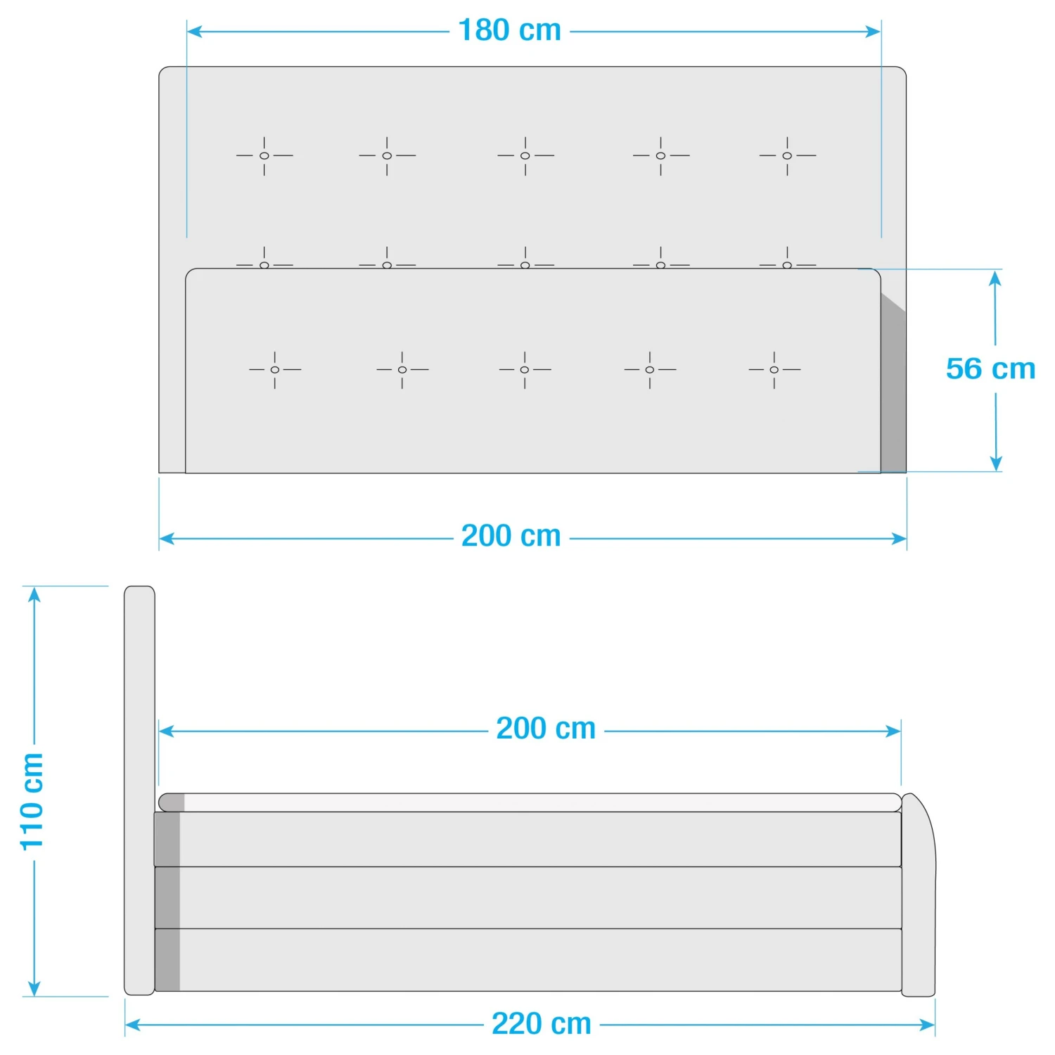 - Liegefläche: 180 x 200 cm