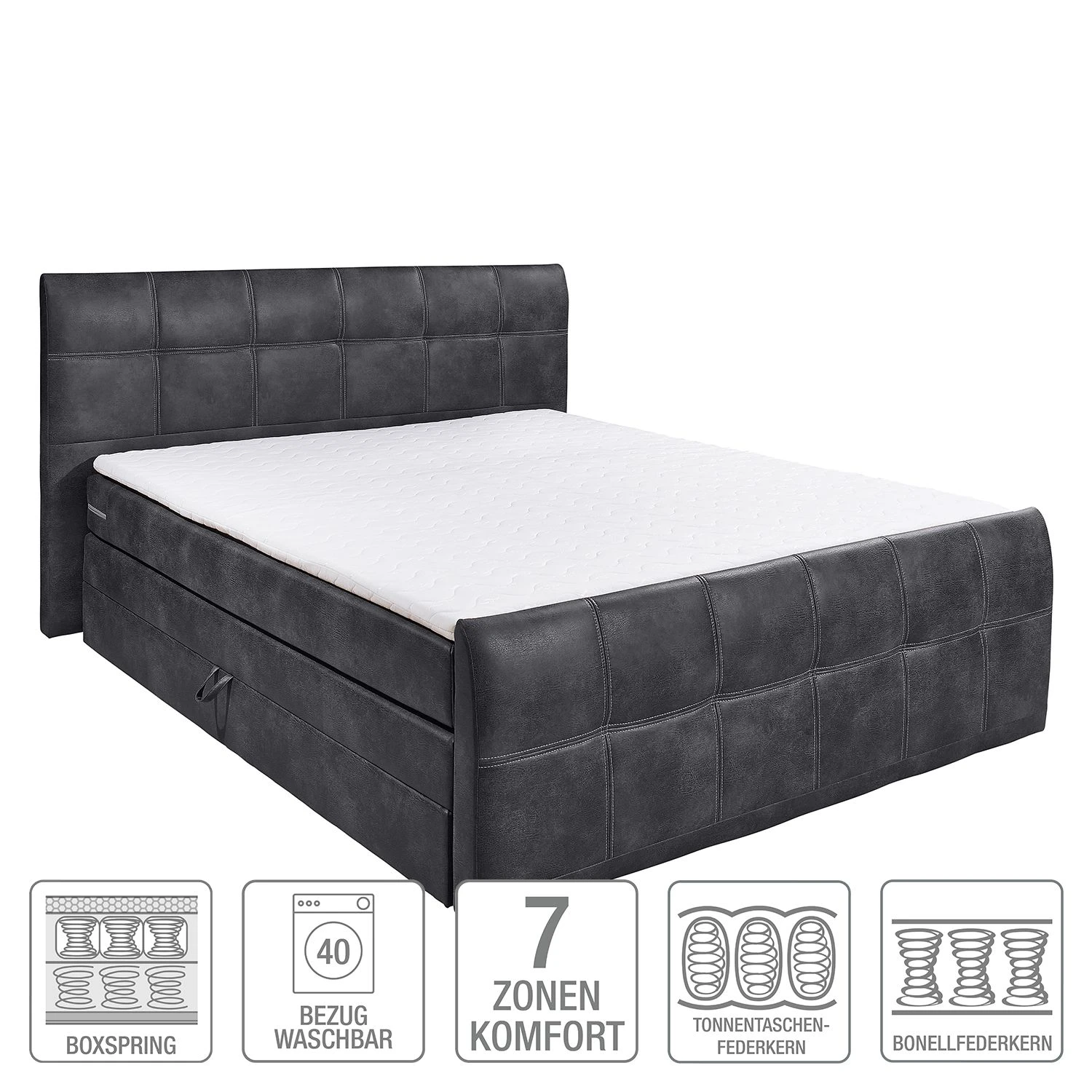 - Lieferumfang: Boxspringbett inkl. Topper, ohne Dekoration