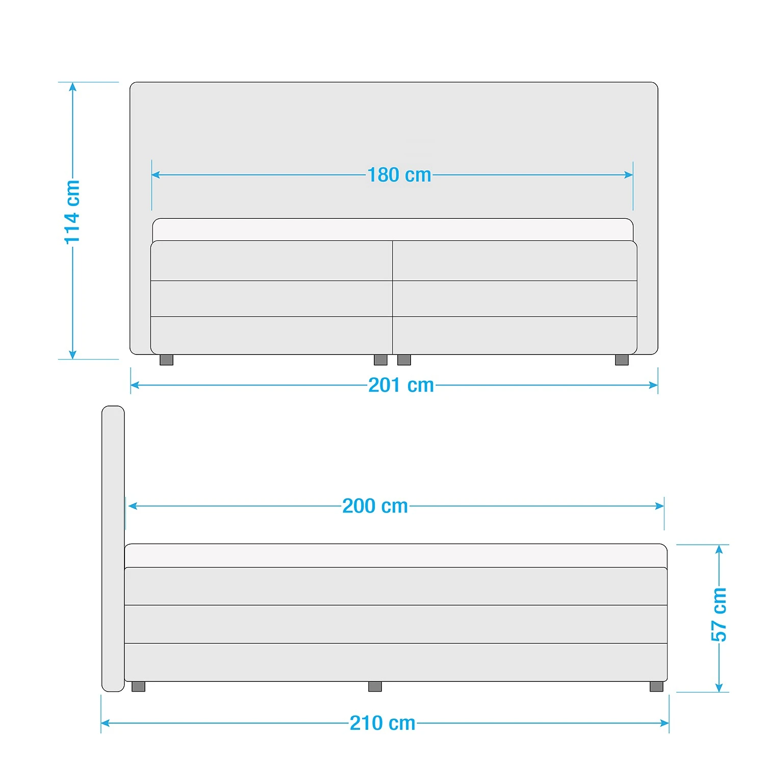 - Bettkantenhöhe: 57 cm
