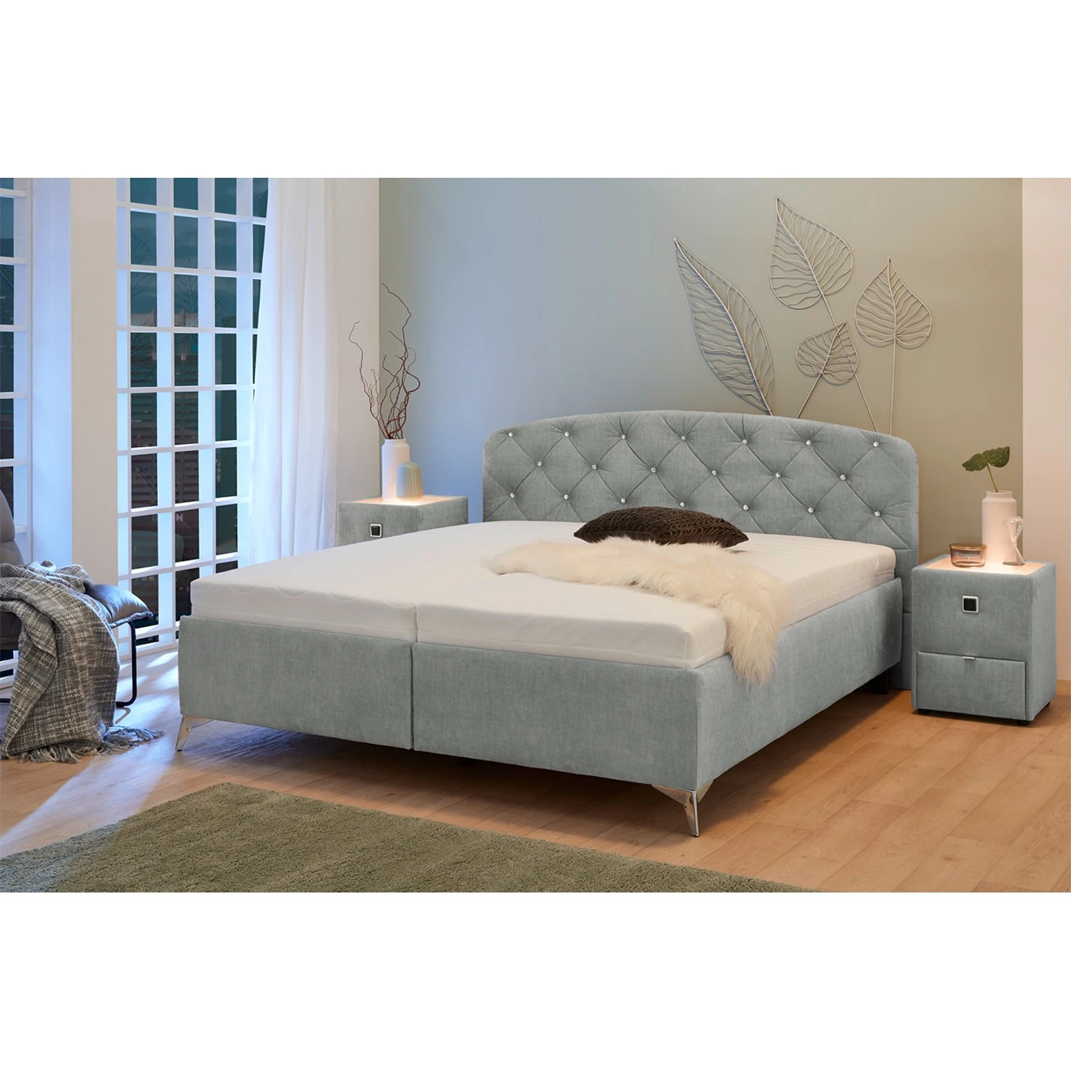 - Lieferumfang: Polsterbett inkl. Kopfteil und Matratze ohne Dekoration