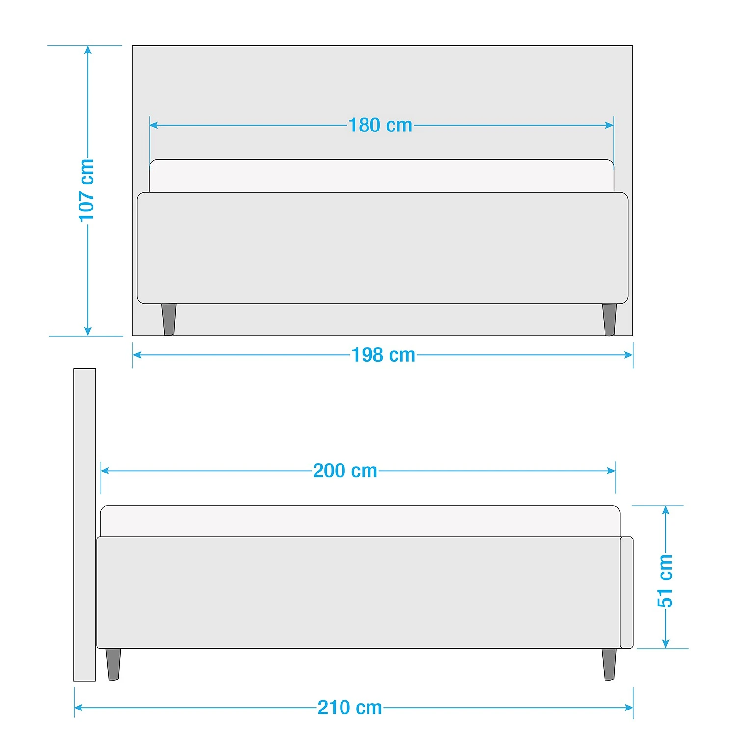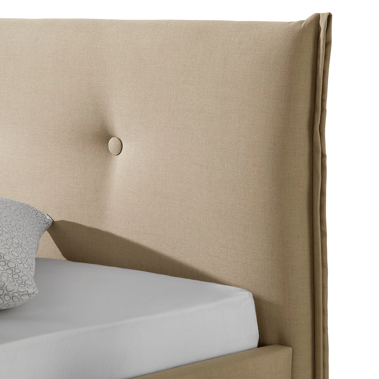 - Weitere Qualitätsmerkmale: Bettgestell mit Kopfteil (mit seitlicher Doppelbiese und stoffbezogenen Knöpfen). 4 Holzfüße buche natur geölt, 15 cm hoch