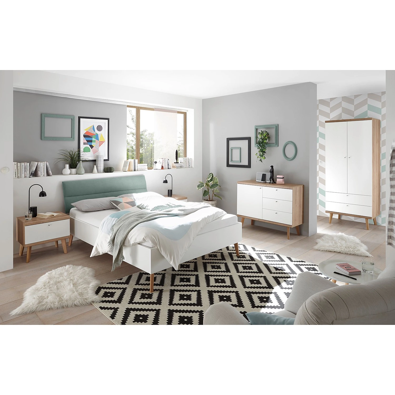 - Bettgestell: Weiß, Kopfteil: Mint, Absetzung: Eiche Riviera Dekor
