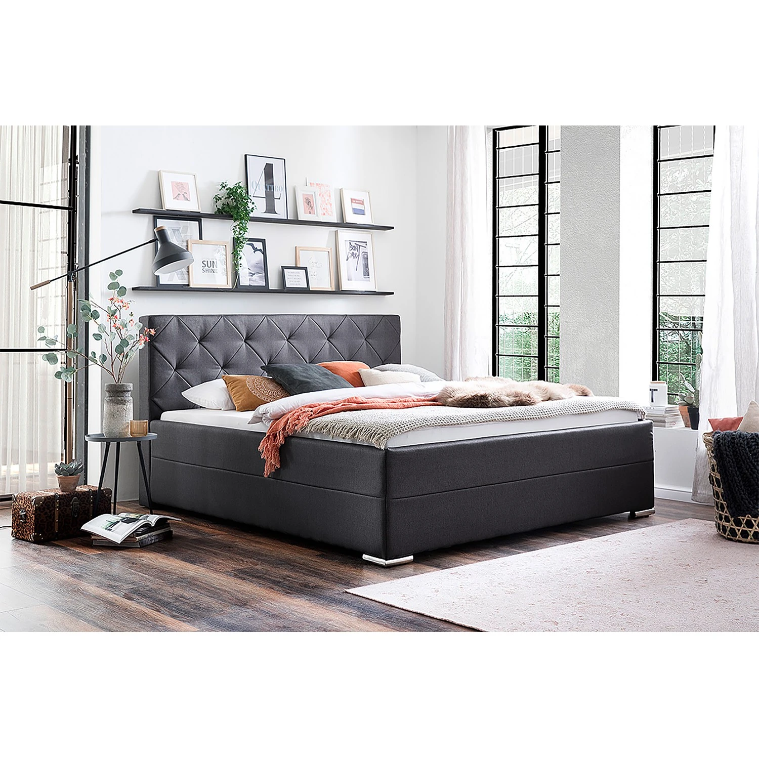 - Lieferumfang: Polsterbett ohne Lattenrost, Matratze & Dekoration
