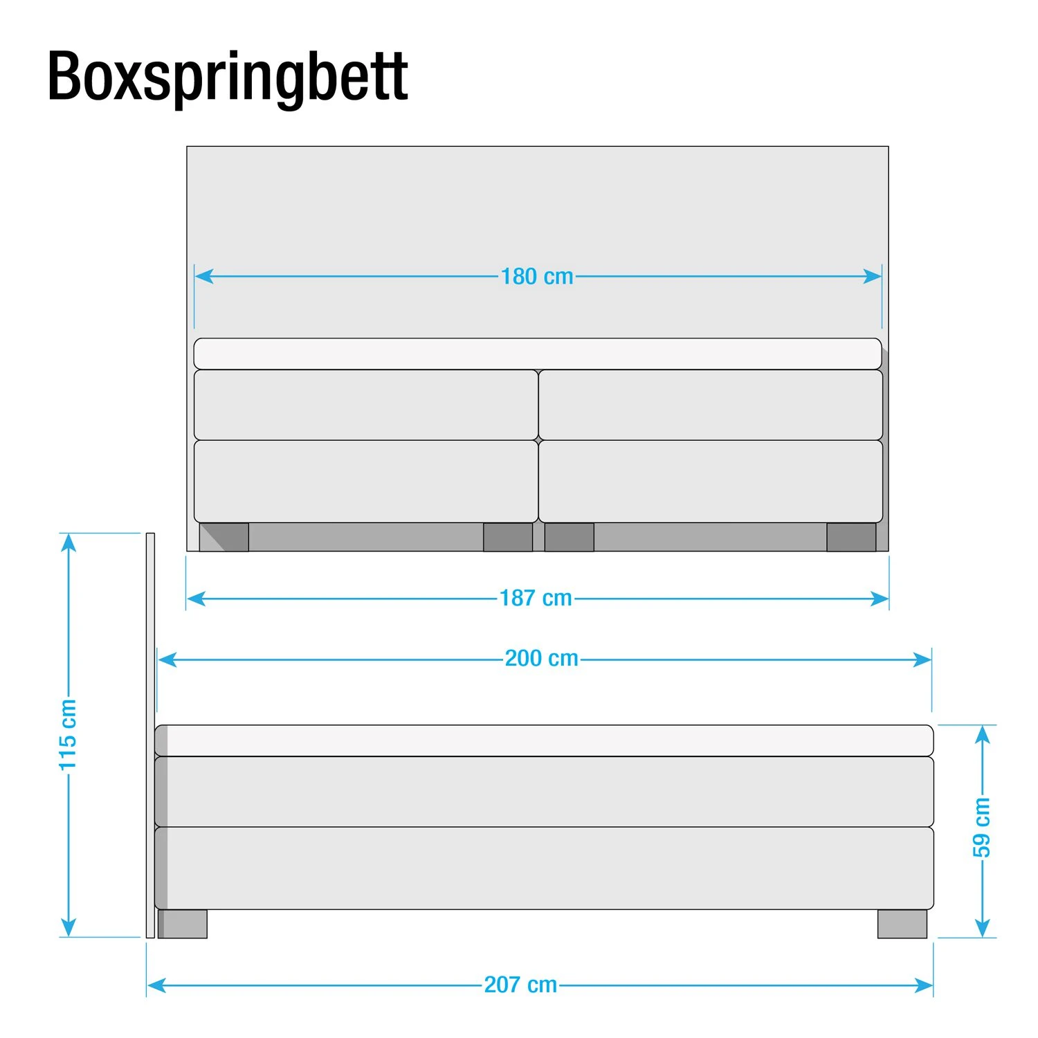 - Lieferumfang: Boxspringbett ohne Topper & ohne Dekoration