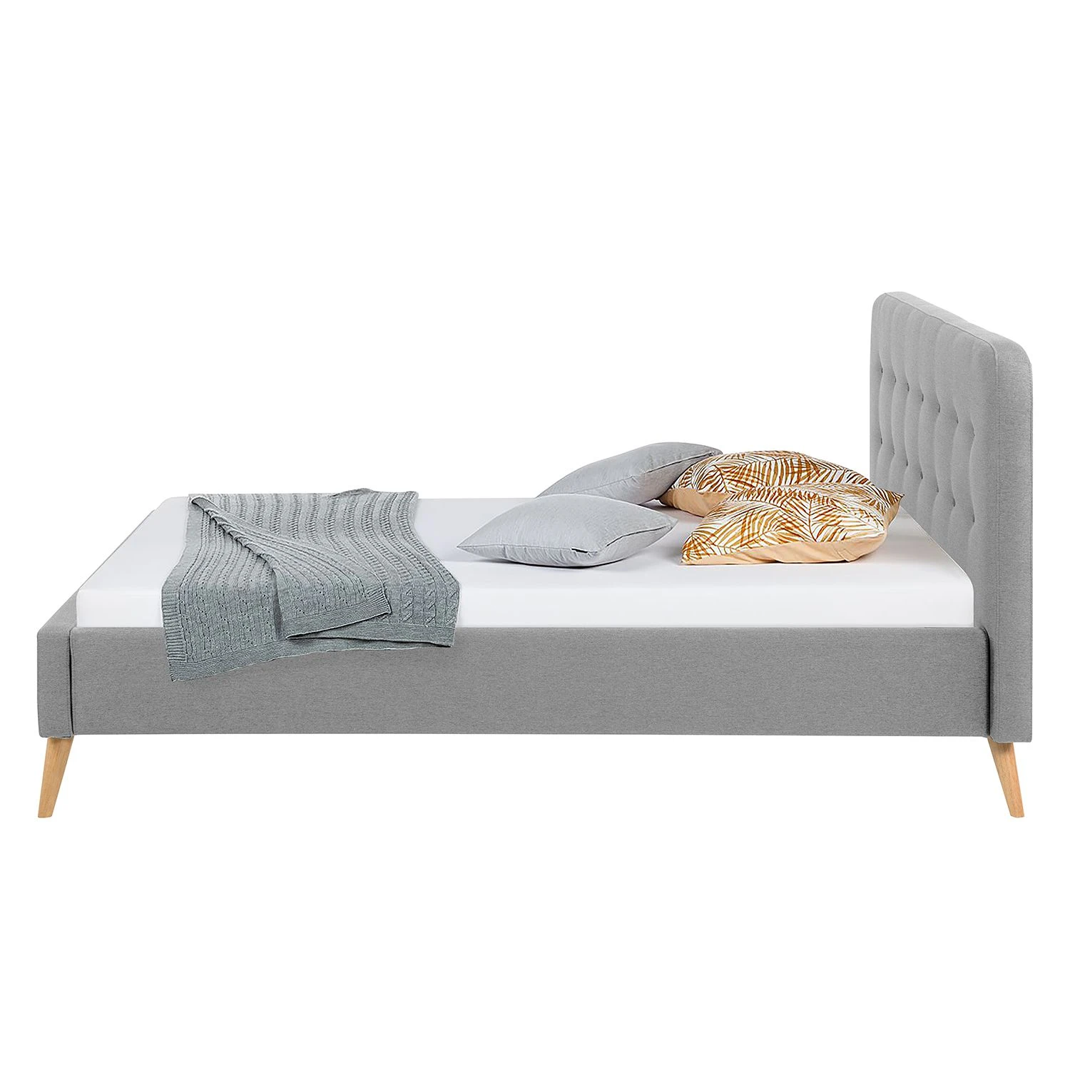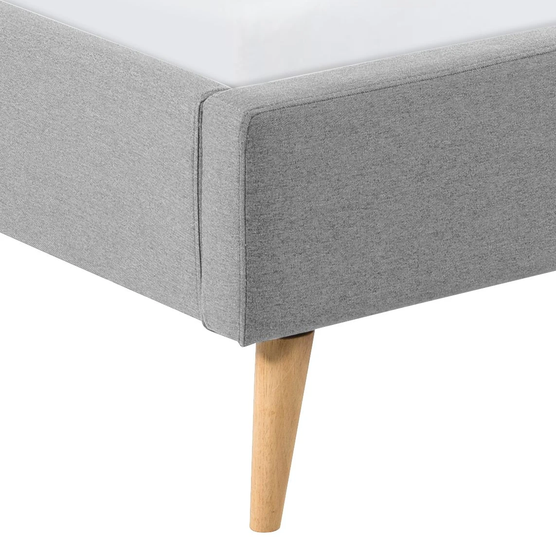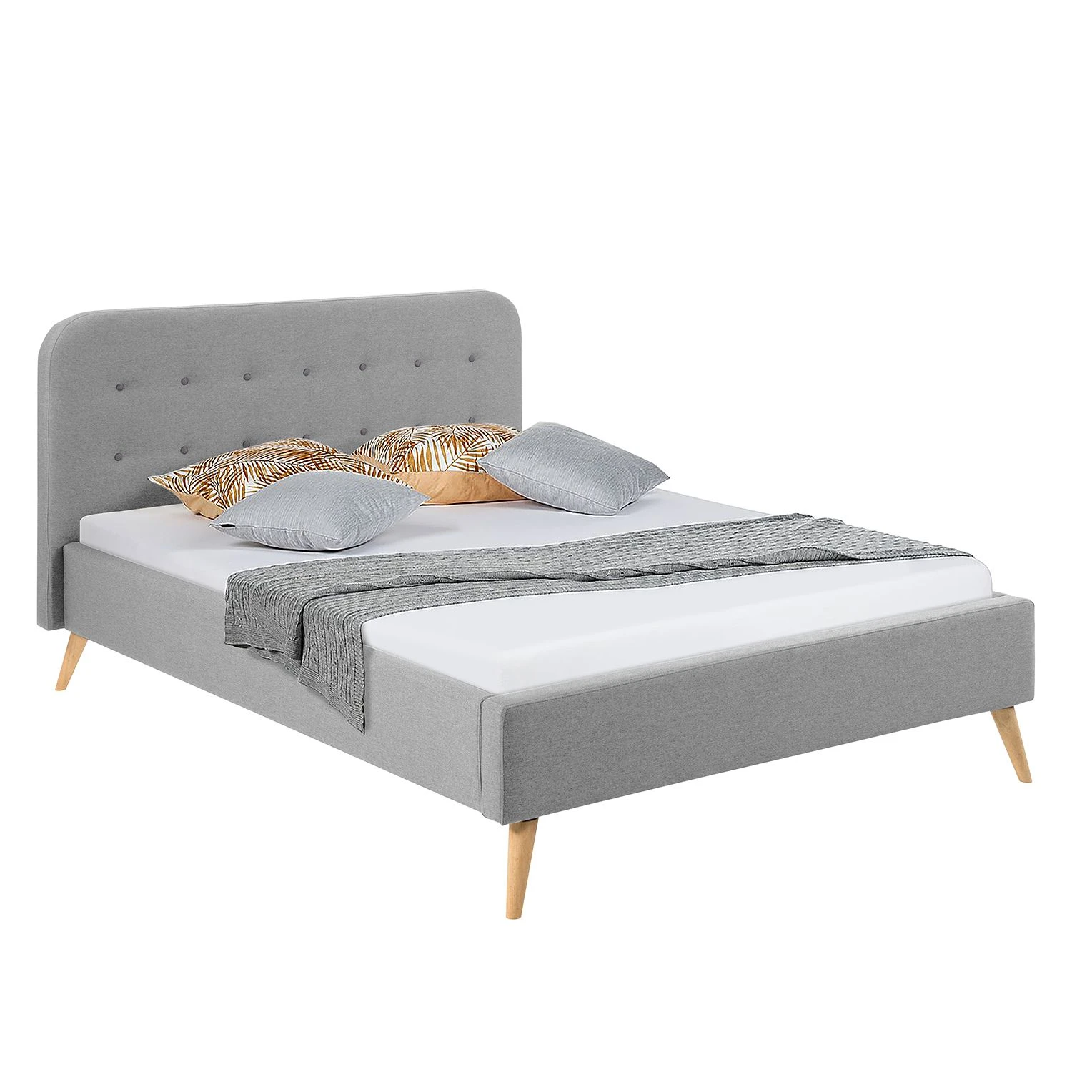 Design mit einer skandinavischen Note entspricht dem zeitgenössischen Geschmack. In diesen Einrichtungsstil fügt sich das Polsterbett Klink II dank seines nordischen Entwurfs ideal ein. Besonders auffällig an dem Möbel präsentiert sich das Kopfteil mit abgerundeten Ecken und dekorativen Knopfsteppungen. Das Bett hat schräg gestellte Füße aus massivem Gummibaumholz, die einen schönen Kontrast zu dem Bezug mit Webstoff aus strapazierfähigem Polyester setzen. Der gepolsterte Rahmen wurde aus massivem Kiefernholz und Sperrholz gefertigt. Mithilfe der soliden Mitteltraverse lassen sich ein bzw. zwei Lattenroste sicher auflegen, ohne zu verrutschen. Das Polsterbett Klink II ist in verschiedenen Größen erhältlich, je nachdem wie großzügig man sich betten möchte.