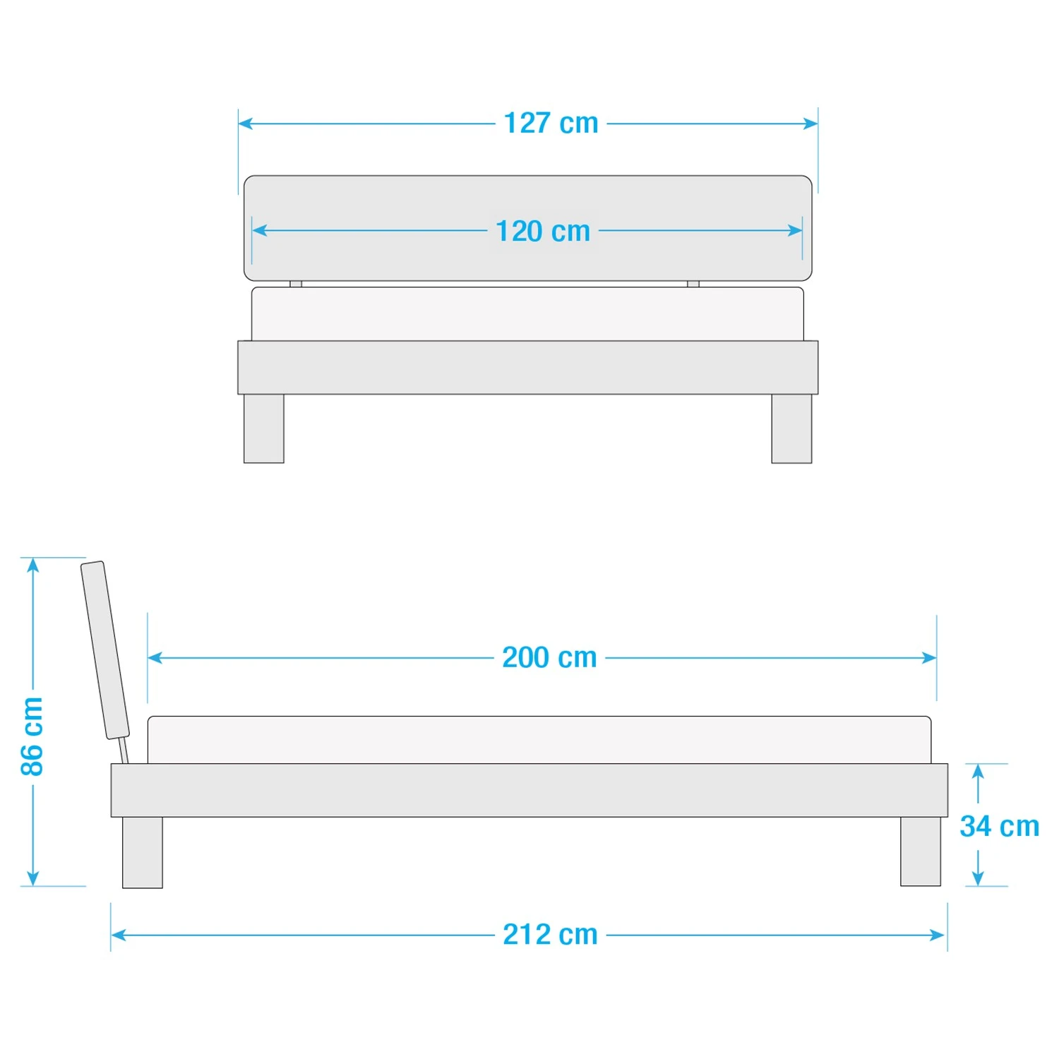 - Bettkantenhöhe: 34 cm