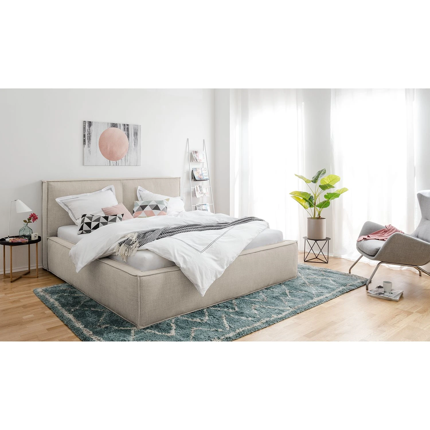 Dem textilbezogenen Polsterbett Kinx sieht man die Gemütlichkeit auf den ersten Blick an. Sein üppig gepolstertes hohes Kopfteil ist super bequem zum Anlehnen beim Lesen, Fernsehen oder Frühstück im Bett. Der rundumlaufende Klettbezug mit Hussen lässt den gesamten Rahmen wie aus einem Stück wirken. Ideal für die Ablage von Smartphone und TV-Fernbedienung ist der breite Rahmen, auf dem man sogar beim Anziehen sitzen kann. Die Einlegetiefe ist vierfach verstellbar, sodass sich das Bett für praktisch alle Matratzen- und Schlafsysteme eignet. Eine echte Wohlfühloase, die zum Highlight jedes Schlafzimmers wird!