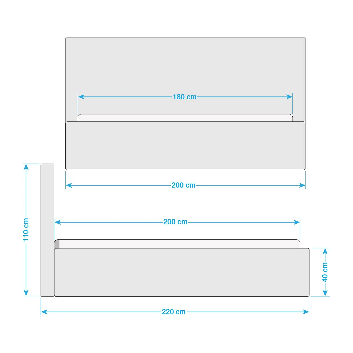 - Liegefläche: 180 x 200 cm