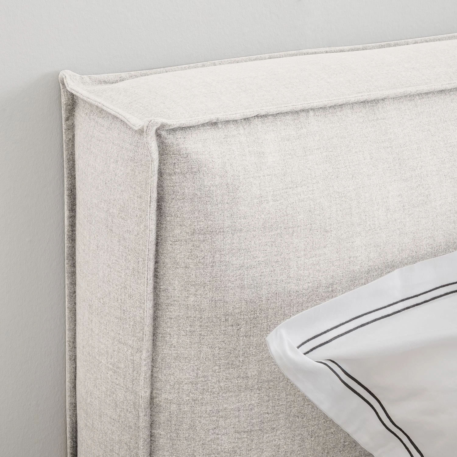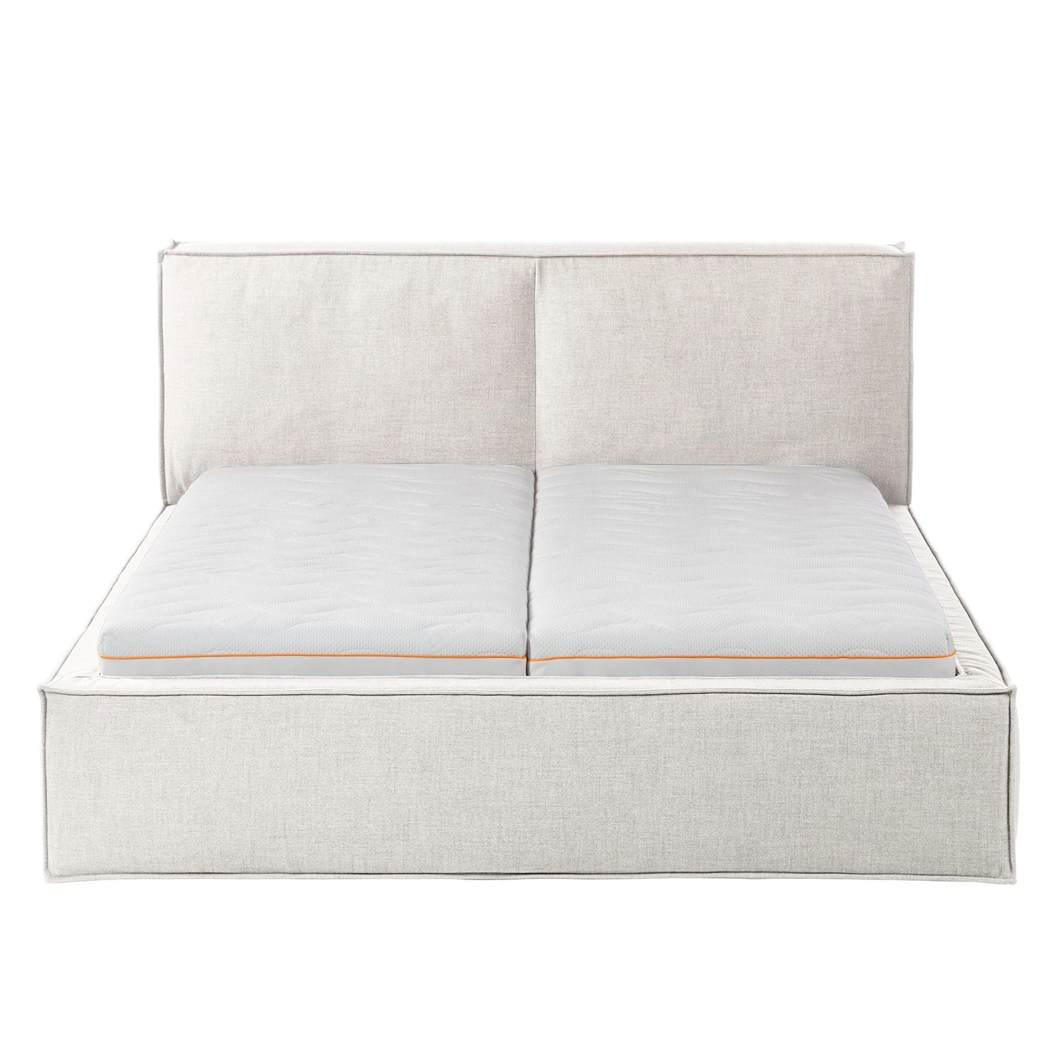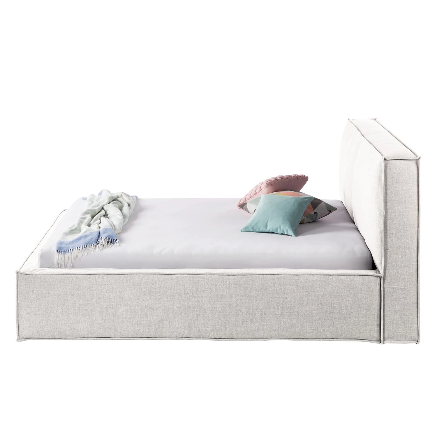Dem textilbezogenen Polsterbett Kinx sieht man die Gemütlichkeit auf den ersten Blick an. Sein üppig gepolstertes hohes Kopfteil ist super bequem zum Anlehnen beim Lesen, Fernsehen oder Frühstück im Bett. Der rundumlaufende Klettbezug mit Hussen lässt den gesamten Rahmen wie aus einem Stück wirken. Ideal für die Ablage von Smartphone und TV-Fernbedienung ist der breite Rahmen, auf dem man sogar beim Anziehen sitzen kann. Die Einlegetiefe ist vierfach verstellbar, sodass sich das Bett für praktisch alle Matratzen- und Schlafsysteme eignet. Eine echte Wohlfühloase, die zum Highlight jedes Schlafzimmers wird!