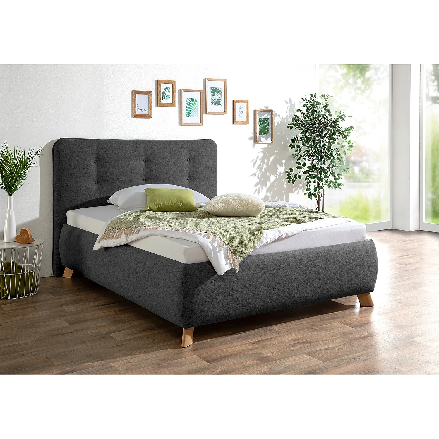 Mørteens Polsterbett Karelia I – Strukturstoff Mali: Grau – 180 x 200cm – Ohne Stauraum