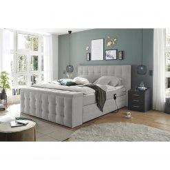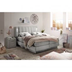 Loftscape Boxspringbett Trönö II – Microvelours Thala: Silber
