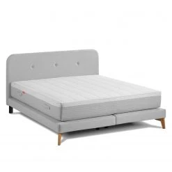 SmoodSpring Bett II – Webstoff / Eiche massiv – Lichtgrau – 140 x 200cm