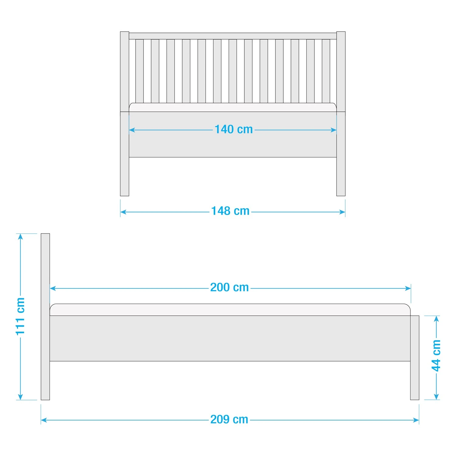 - Bettkantenhöhe: 44 cm