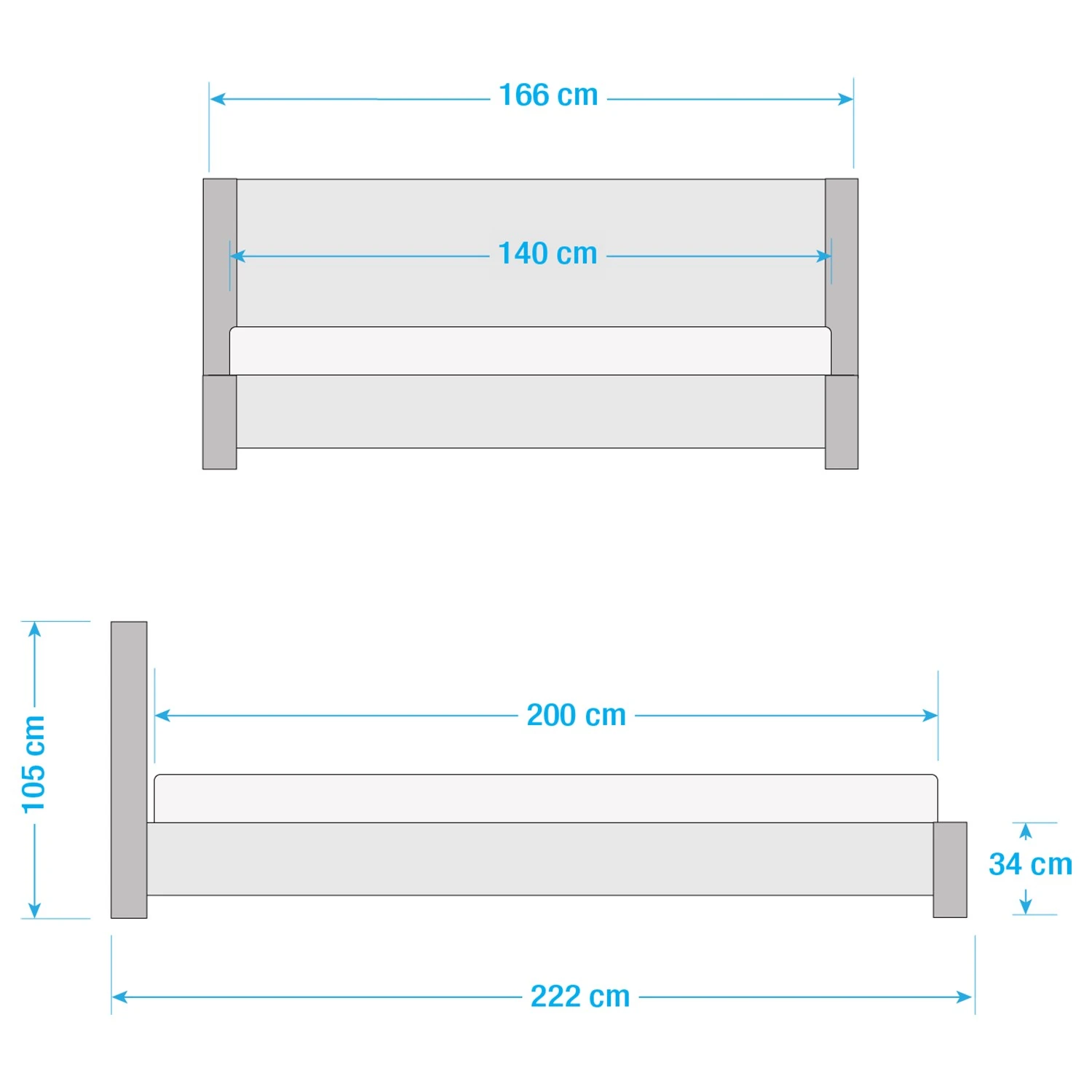 - Bettkantenhöhe: 34 cm