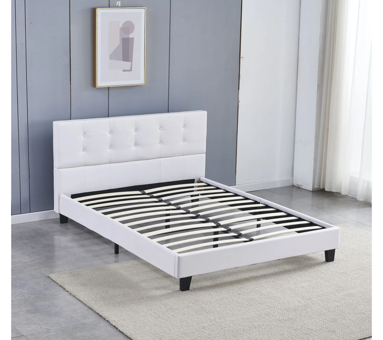 Unser Bett bringt mit Sicherheit einen Hauch von Modernität in Ihr Schlafzimmer. Sein gepolstertes und geknöpftes Kopfteil verleiht Ihrem Schlafzimmer eine gemütliche Wirkung. Das elegante Design dieses Bettes wird auch durch seine Kunststoffpolsterung geprägt. Die Stabilität des Bettes wird durch 4 stabile Beine gewährleistet und durch das Vorhandensein einer zentralen Querstrebe und 4 zusätzlicher Stützbeine unter dem Lattenrost verstärkt, letzteres ist im Lieferumfang enthalten.