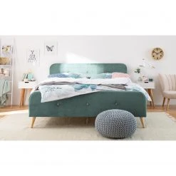 Das Bett Fleek I steht für einen Stil, der Modernität, Gemütlichkeit und jede Menge Extravaganz verkörpert. Weich verlaufende Linien verleihen dem Schlafmöbel ein Design, das wirkt, als wäre es direkt der Natur entsprungen. Das formschöne Gestell des Betts Fleek I besteht aus geöltem Eichenholz. Für eine gemütliche Note sorgt zudem das mit textil bespannte Kopfteil. Das Bett Fleek I lässt sich gut mit zeitgemäßen Massivholzmöbeln im sachlich-funktionalen Design kombinieren. Gut passen zum Beispiel Einrichtungsgegenstände im skandinavischen Stil.