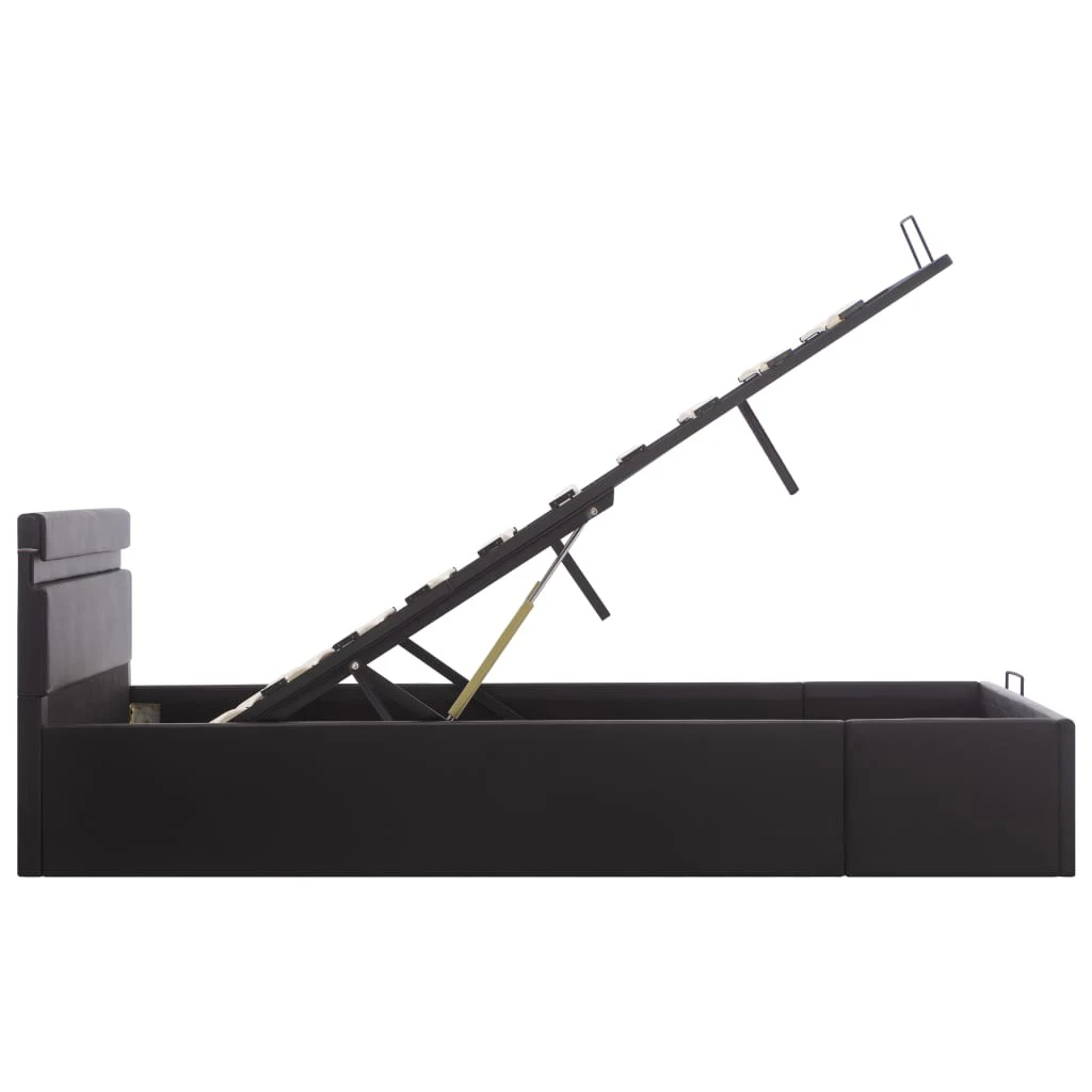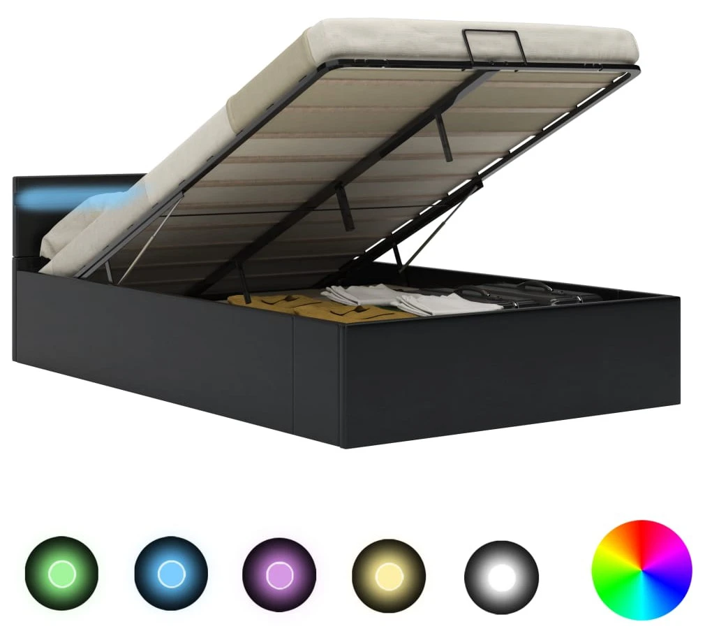 Der pulverbeschichtete Stahlrahmen und die Sperrholzlatten tragen zur Robustheit und Langlebigkeit des Bettes bei. Das mit glänzendem Kunstleder gepolsterte Stauraumbett wirkt einladend und ist pflegeleicht. Dieses Schlafzimmermöbel ist für eine Matratze von 140×200 cm geeignet. Außerdem können Sie die Leistung, Helligkeit und die verschiedenen Blinkfarben des LED-Lichtstreifens mittels der mitgelieferten, voll funktionsfähigen 24-Tasten-Fernbedienung bequem einstellen, um eine atemberaubende Lichtshow zu erschaffen. Dieses Produkt ist leicht zu montieren.