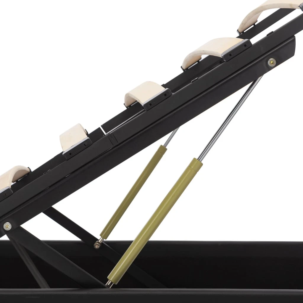 Dieses Polsterbett verwandelt den ungenutzten Raum unter der Matratze in einen Stauraum mit viel Platz zur Aufbewahrung von Kleidung, Laken, Decken usw. Der hydraulische Gashebemechanismus macht das Anheben der Matratze zum Kinderspiel. Der Lattenrost steht nach dem Anheben aufrecht, sodass Sie beide Hände frei haben, um darunter liegende Gegenstände zu entfernen oder zu verstauen.