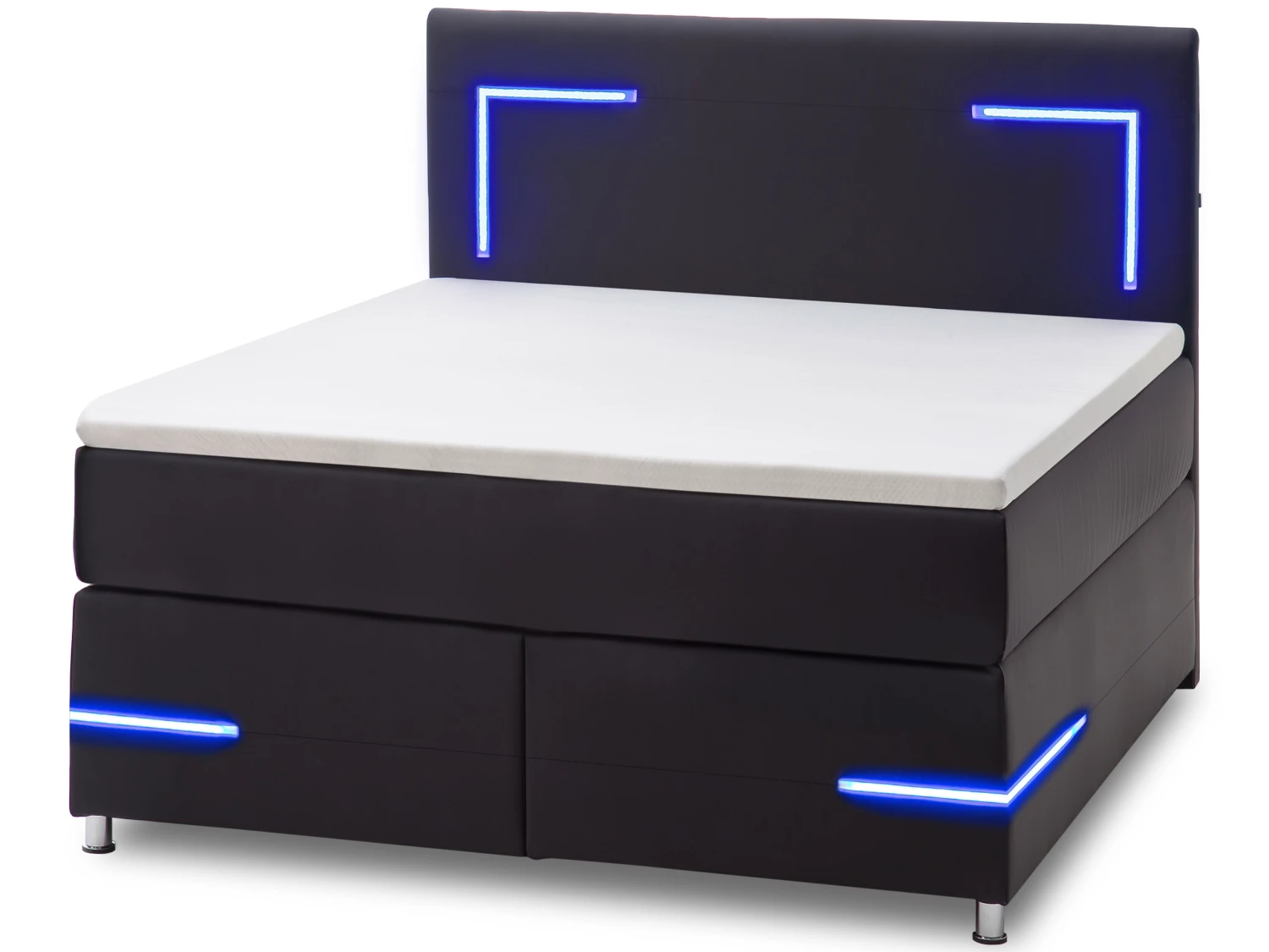 - Lieferumfang: Boxspringbett inkl. LED-Beleuchtung , Matratze und Topper