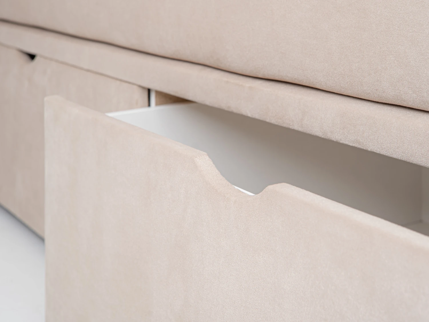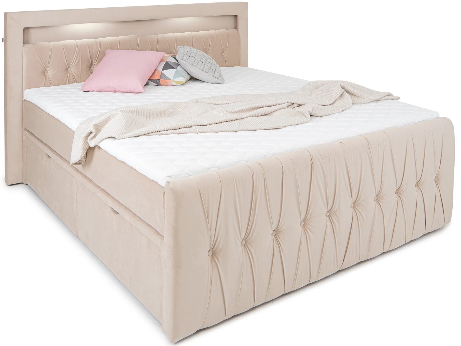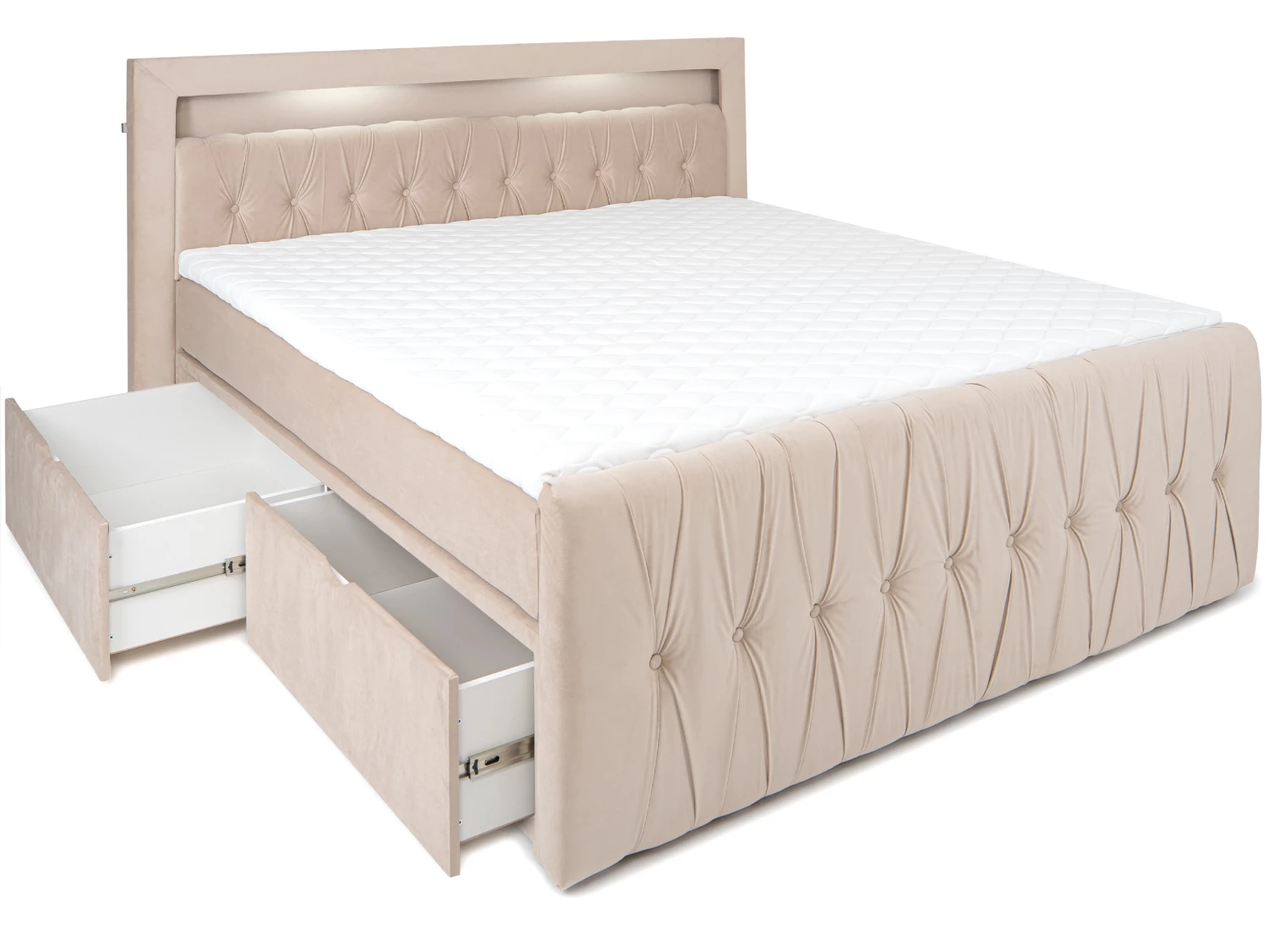 - Lieferumfang: Bett inkl. 2x Schublade (wahlweise links/rechts montierbar), LED-Beleuchtung, USB, Matratze(n) und Topper